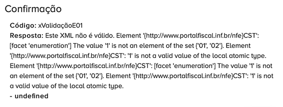 Passo 1 – Na tela de validação do XML da nota faça a busca pelo registro <CST>1</CST> verifique qual dos produtos está apontando o erro.