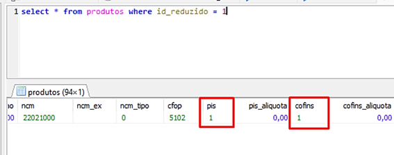 Update produtos set cofins = ’01’ where cofins = ‘1’ and sincronizado = 0