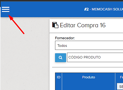 - Compras: Abre a tela com as informações de data da última compra, qual o fornecedor e o valor total do produto na compra em questão.