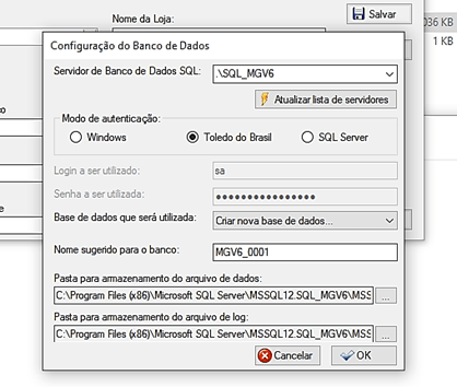 Clique em Salvar e no campo Base de Dados que será Utilizada selecione a opção “Criar Nova Base de Dados”.