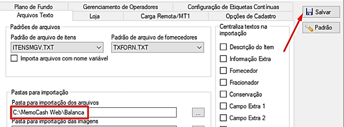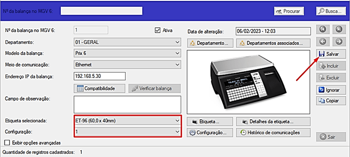 Clique em Salvar e a balança estará pronta para dar a carga e fazer a importação dos produtos.