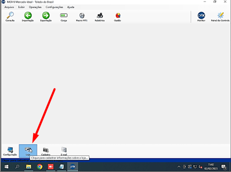 Passo 9 – Ao finalizar, na tela inicial do software, clique em Loja para cadastrar a balança: