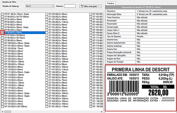 Passo 13 – Clique em “Etiqueta” para selecionar o modelo de etiqueta que será utilizado: