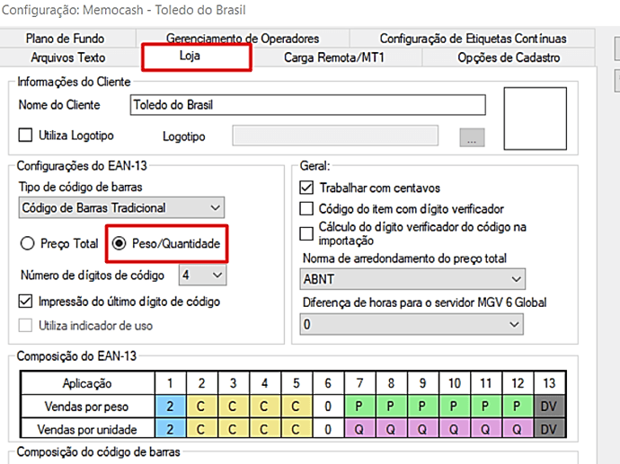 Passo 18 – Agora na aba de Loja, deixe as configurações como Peso/Quantidade para que funcione corretamente: