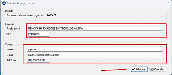 Passo 8 – Na tela de Assistente de Licenciamento clique em “Adicionar” e logo depois em “Solicitar Licença Gratuita”