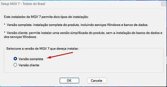Selecione a opção “Versão Completa” e clique em “OK“.