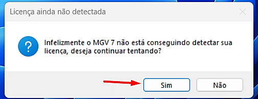 Passo 11 – Aparecerá a mensagem de Licença ainda não detectada, selecione a opção “Sim“.