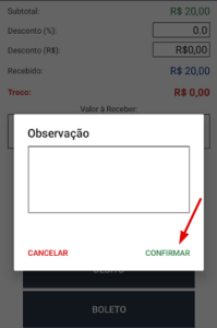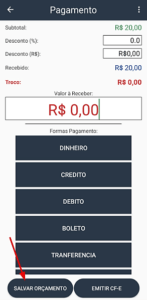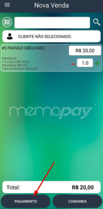 Passo 4 – Clicar em “Confirmar” e ao lançar o produto do orçamento você vai selecionar a opção “Pagamento”.