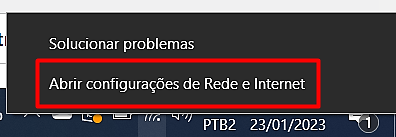 Passo 1 – No ícone da internet localizado no canto esquerdo da tela, clique com o botão direito do mouse e selecione “Abrir Configurações de Rede e Internet”: