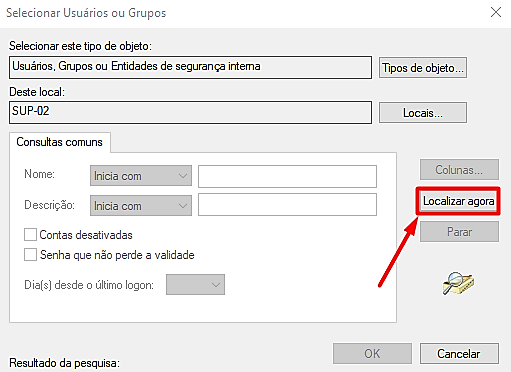 Passo 11 – Para liberar as permissões aos outros usuários clique em Adicionar > Avançado > Localizar Agora e então selecione o próximo usuário. Repita os mesmos passos para os usuários CONVIDADOS e REDE.