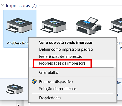 Passo 5 – Clique com o botão direito sobre a impressora e selecione a opção “Propriedades da Impressora”.