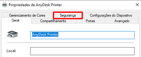 Painel de Controle > Impressoras e Dispositivos > Propriedades da Impressora > Segurança