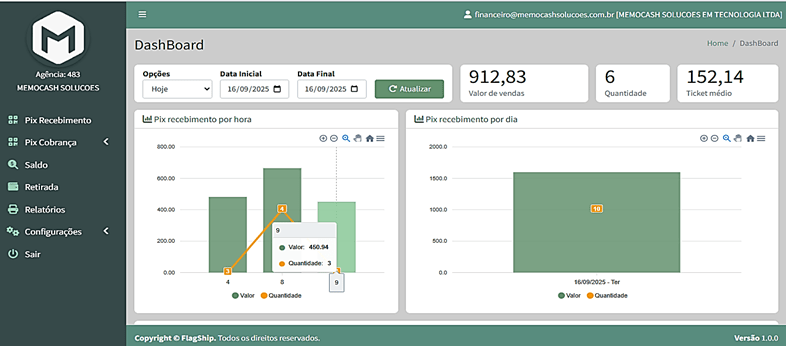 - Resumo financeiro — valor total de recebíveis, pendentes, etc.