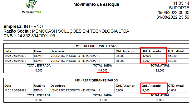 – No relatório é possível ver a baixa em 12 latas referente ao fardo e mais 4 latas avulsas, então o total da movimentação é de 16 latas.