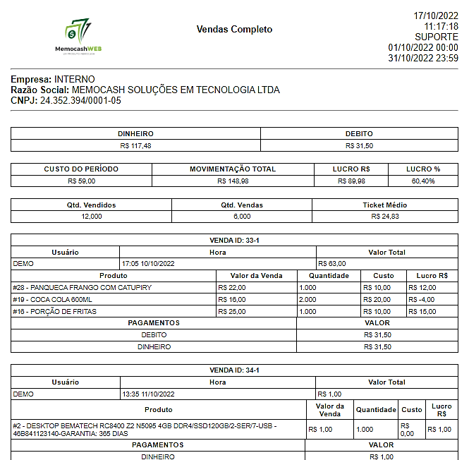 - ID ORIGEM – (PDV BALCÃO, PDV OFFLINE ou MEMOPAY) De qual dos aplicativos foi feita a venda..