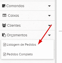 Passo 2 – Selecionar o menu “Pedidos” e depois “Listagem de Pedidos”.