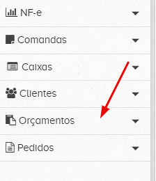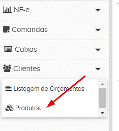Passo 2 – Selecionar a opção “Orçamentos” e depois a opção “Produtos”