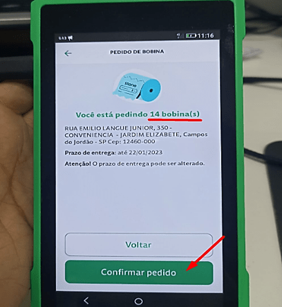 Passo 7 – Após o carregamento aparecerá a tela para confirmação das informações do pedido como: a quantidade de bobinas e endereço de entrega. Nessa tela também é possível ver a previsão de entrega.