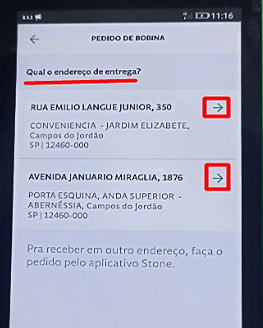 Passo 5 – Após selecionar a quantidade, escolha o endereço para entrega;