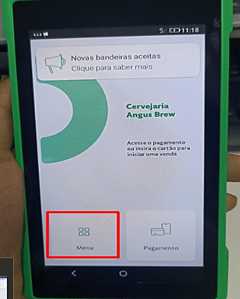 Passo 1 – Na tela inicial da Stone, selecione o “MENU”: