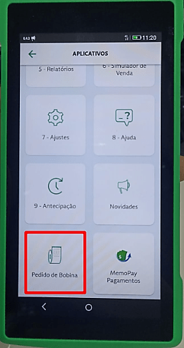 Passo 2 – Na tela de menu, desça até a opção “Pedido de Bobina” no fim da página: