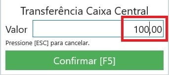 OBS: Essa transação do caixa central aparecerá no fcehamento de caixa como uma Saída.